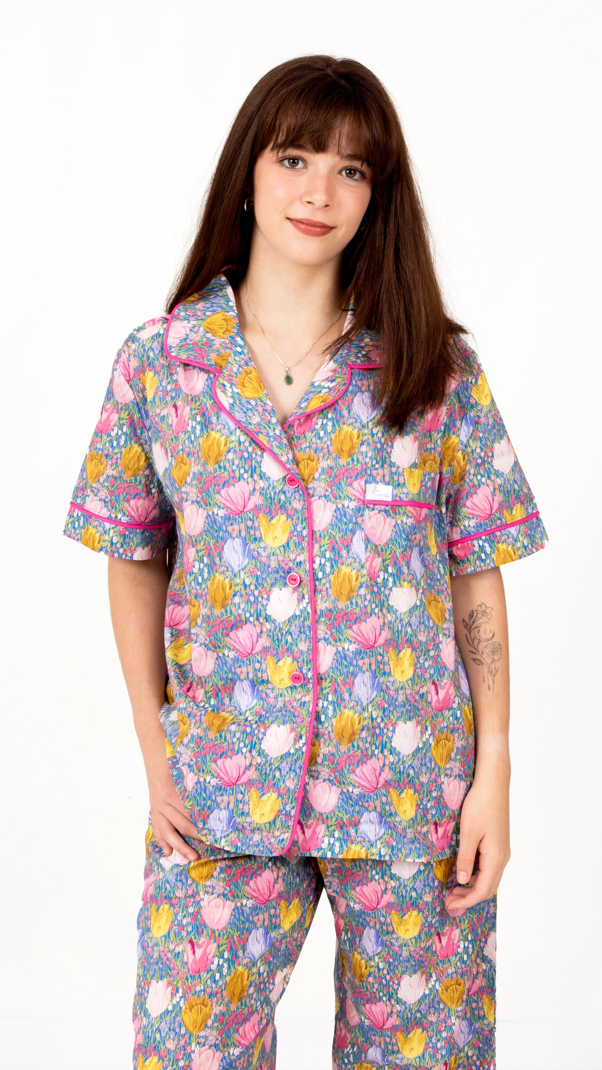 Designed for women who love the freedom and coolness of bare legs, our two-piece set features a short-sleeved top paired with shorts - perfect for balmy evenings or simply lounging in comfort.