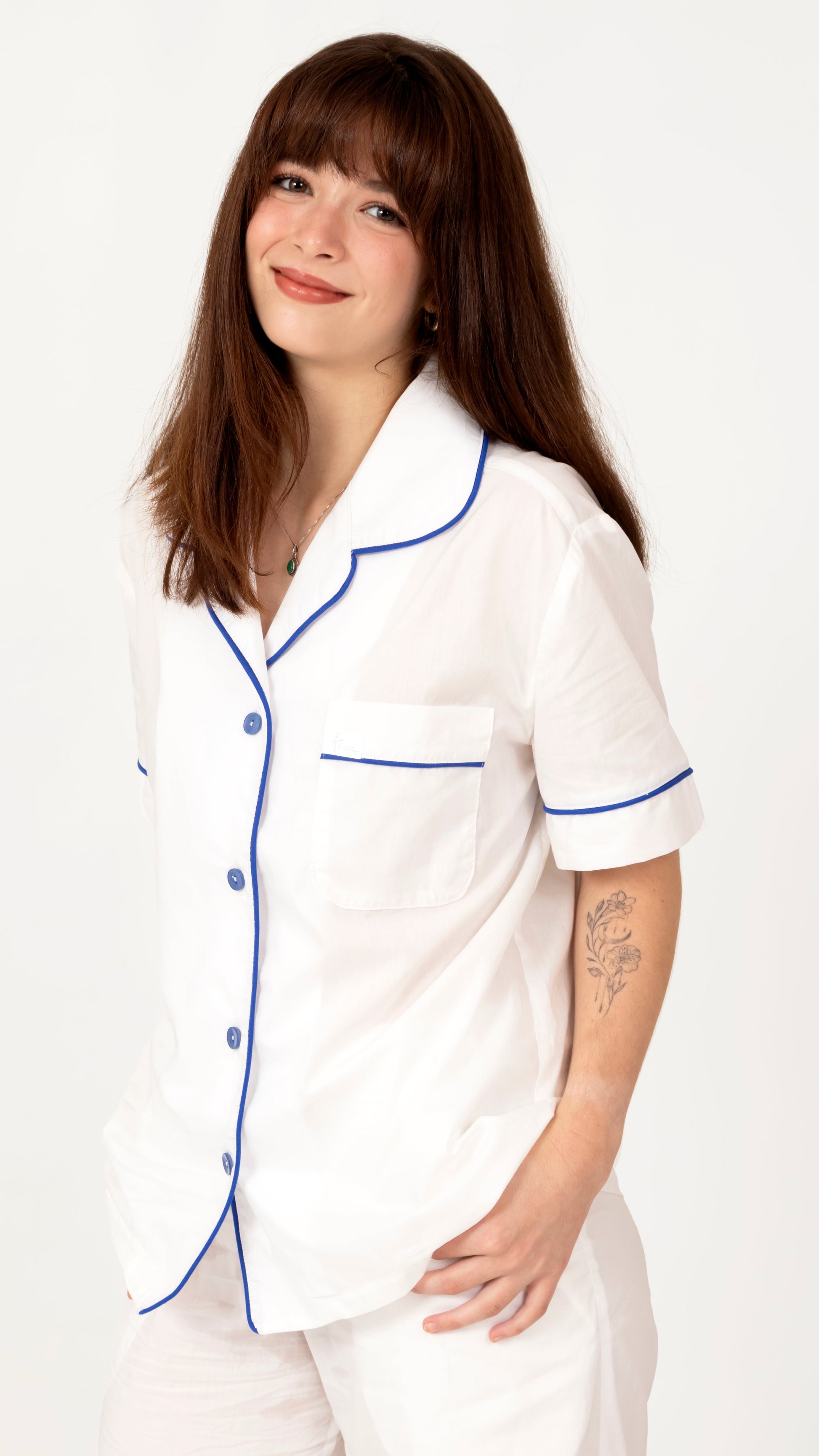 Our beautifully tailored short-sleeved top and long-bottom set is ideal for those who prefer more coverage without compromising on comfort or style. It’s perfect for transitional seasons or evenings with a chill in the air.